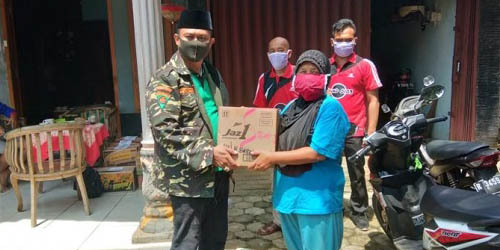 Selain membagikan sembako, Tugiyo juga mengajak Gerakan Pemuda Anshor melakukan pembagian masker dan penyemprotan disinfektan.