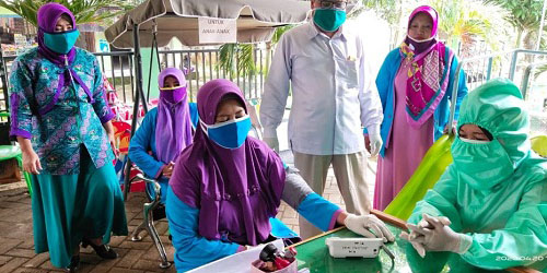 Setelah dinyatakan aman, barulah relawan Perempuan Bangsa diperkenankan melakukan baksos di Puskesmas Ngetos.