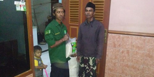 Dalam melakukan pendistribusian beras berlogo Burhanuddin El Arif, DPAC PKB Ngatos yang dipimpin Abud Musyafa mendatangi rumah tokoh agama satu persatu.