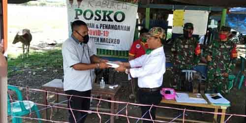 Menurut Safar, ia bersama dengan relawan membagikan alat kesehatan seperti masker, hand sanitizer dan thermometer suhu guna mendeteksi dini gejala wabah virus yang cukup mematikan di posko perbatasan antara Kabupaten Nagekeo dan Kabupaten Ende.