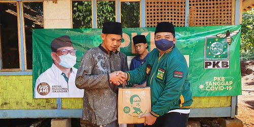 PANDEGLANG, PKBNews - KETUA Fraksi Partai Kebangkitan Bangsa (FPKB) Dewan Perwakilan Rakyat Daerah (DPRD) Kabupaten Pandeglang, Ade Muamar dan Sekretaris Tim Gugus Tugas Covid 19 PKB Pandeglang, Aminudin serahkan titipan Ketua Umum (Ketum) Dewan Pengurus Pusat (DPP) PKB Abdul Muhaimin Iskandar (Gus Muhaimin) langsung kepada guru dan guru ngaji di Kecamatan Saketi.