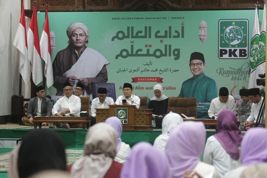 PKBNEWS - Ketua Umum Partai Kebangkitan Bangsa (PKB) Abdul Muhaimin Iskandar atau Gus Muhaimin menutup rangkaian Kajian Kitab karya Hadratussyekh KH Hasyim Asy`ari Season 4 yakni kitab Adabul `Alim wal Muta`allim yang digelar sepanjang bulan Ramadan. Kajian tersebut telah berlangsung selama 14 kali pertemuan sebagai bagian dari tradisi keilmuan dan spiritual yang terus dijaga oleh kalangan Nahdliyin.