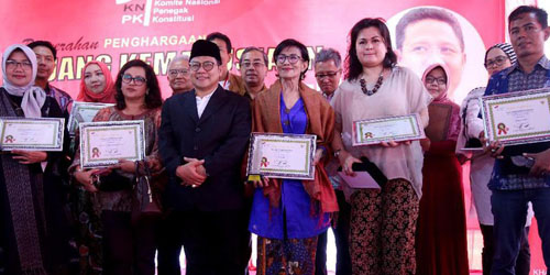 PKBNews - SEDIKITNYA 15 pejuang kemanusiaan memperoleh penghargaan dari Wakil Ketua Majelis Permusyawaratan Rakyat Republik Indonesia (MPR RI) Muhaimin Iskandar atau Cak Imin. Ke-15 pejuang kemanusiaan tersebut telah mendidikasikan seluruh hidupnya untuk kemajuan Indonesia.